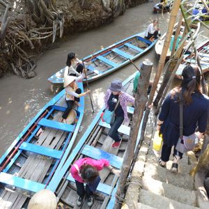 ガイドのブンさんのベトナム,ホーチミン,メコン川のお話はとても興味深く楽しかったです。小学生も興味深くクチトンネルでベトナム戦争について聞いていました。お昼の食事も美味しかったです。目が描いてある船達も可愛かったです。