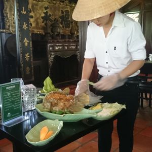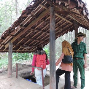 クチトンネルでは ベトナム人なら小柄なのでもぐりこめますが 大柄な米兵にはきつい という 隠れトンネルに入る体験をしました。 わなの落とし穴を見たり 戦争の悲惨さに思いをはせました。 歴史を学ぶひと時でした。 ランチタイムは逆にとても楽しいものでした。大きなちょうちんのようなお餅を食べたり 象の耳 というわれるお魚は お皿に寝ているのではなく泳ぐ姿のように 立てて供されてきました。おいしかったです。ぜひ行きたい場所 ぜひ体験したいツアー そして ぜひ食べていただきたいランチだと 強くお勧めしたいです。