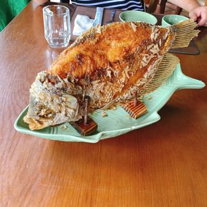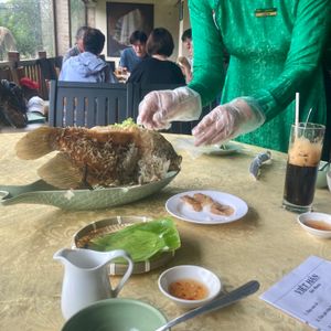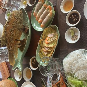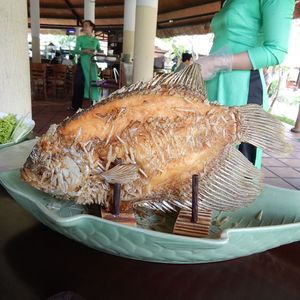 次にお昼ご飯を食べました。名物の象の耳の魚はフライにしてあって店員さんが手でちぎってライスペーパーに巻いてくれました。料理が多くて残しちゃったけど、普通に美味しいです。朝ごはん少なくしたらよかった。