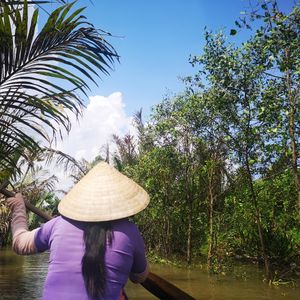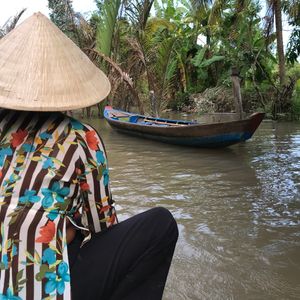 メコン川では手漕ぎボートに乗ることが出来、