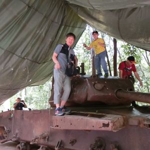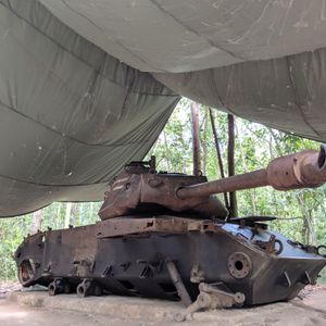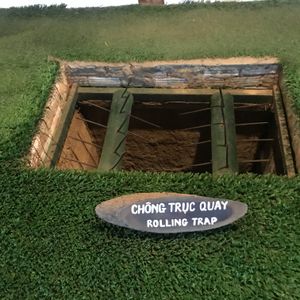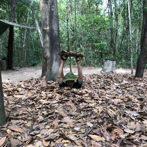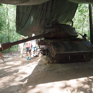 クチトンネルはベトナム戦争で実際使用されていた、戦車や銃、落とし穴の展示があり、トンネルは実際のものを体験する事が出来テンションも上がりました。