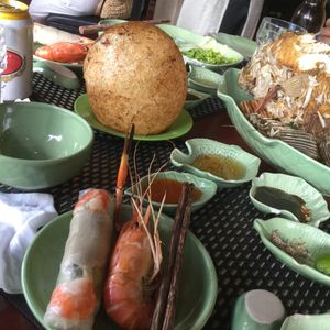 レストランでのお昼ご飯はどれもおいしかったです。特に、まんまるの揚げ餅がおいしくて、もう一度食べたいと思ったのですが、その地域の特産品のようで、ホーチミン市内では食べられないそうです。悲しい。