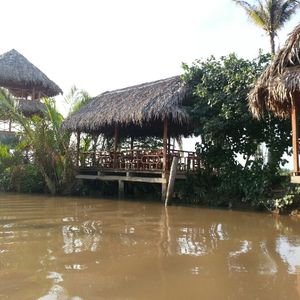 その後楽しみにしていたメコン川支流の細い川を小舟でゆっくりと下りました。手漕ぎでマングローブを分け入るように進みます。楽しくてあっという間に目的地に到着、お待ちかねのエレファントイヤーフィッシュの夕食です。お姉さんが揚げたてのかなり大きな魚を取り分けて生春巻きに包んで渡してくれました。味は淡泊な白身の魚でクセもなくて食べやすかったです。ほかには鍋や揚げ春巻き、チャーハンなどお腹いっぱいになりました。