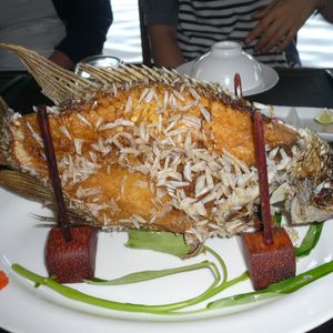 また、メコンデルタ名物の魚料理「エレファントイヤーフィッシュ」も、