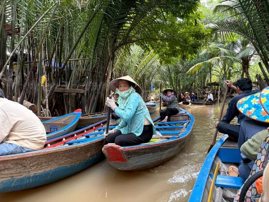 日本から到着した朝に参加したものの、飛行機が遅延して予定集合時間に2時間ほど遅れてしまいました。催行会社とLINEでやりとりでき、貸切ツアーだった事もありキャンセルされずそのまま参加できたので感謝です。ツアー内容は盛りだくさんで、ガイドさんも道中も色んな話を上手な日本語でしてくれて、最初から最後まで飽きませんでした。昼食も全て美味しく、無駄な行程もなし。ガイドさんが写真もたくさん撮ってくれました。ただ、メコン川の行程の中で、蜂蜜屋やフルーツを食べつつ歌を聴いたりした部分は、品物を買ったりチップを渡さないと席を立てないような雰囲気で少し気まずかったです。