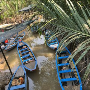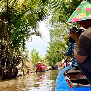 その後小さな船に乗り、川下りをしました。笠を被ったり、川はまるでジャングルクルーズでとても素敵な体験でした。ガイドさんは「ツアー会社側からもチップを払うが、よければチップを支払ってください。」.とおっしゃった。乗ってすぐにチップを求められ、4人で5000ドン支払おうとしたところ、船乗りに足りないと言われ結局10000ドン支払いました。