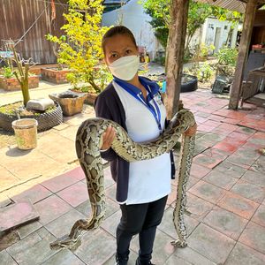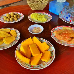 まず、2時間ほどバスにのって、船乗り場にいき、そこから、船に乗って島に行きます。島の人たちの暮らしを感じながら、ココナッツキャンディ工場を見たり、フルーツを食べたり、ヘビを肩にかけたり、はちみつを食べたりしました。クルーズは他の観光客の人と4人くらいで乗って、20分くらいだったと思います。とても貴重な体験でした!その後は島を出て、レストランに行きました。私たちだけで貸し切りだったので、ゆっくりとしたとてもいい時間を過ごすことができました。
