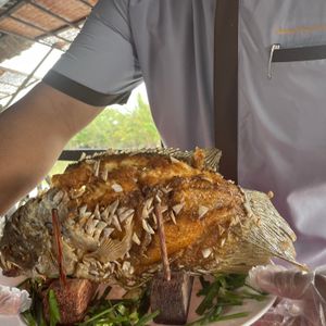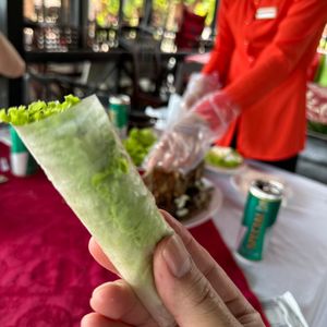 昼食は「象耳魚の春巻き」をその場で作ってくれました。