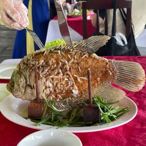 その後行きと同じ大きな船に乗って港に戻ました。船ではココナッツを飲むことができました。(少しぬるいです)そしてそこからバスでレストランへ向かいました。レストランは申し込んだグループごとにテーブルを用意していました。1人で申し込むと1人で1テーブルになると思います。(私はその場で仲良くなった他のグループの人のテーブルに移動しました。臨機応変に対応してくれます。)象耳魚やフォーなどとても美味しかったです。飲み物代は最後にまとめて支払います。