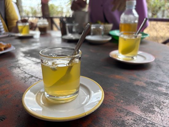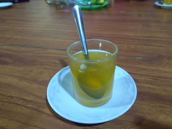 金柑蜂蜜のお茶を頂き、押し売り感も嫌味感も無くサービスされながら何人かローヤルゼリーを買わせて頂きました。