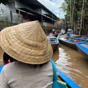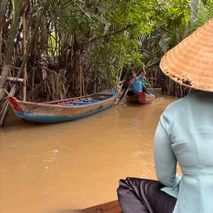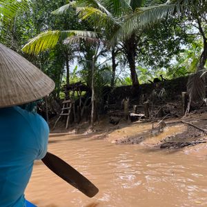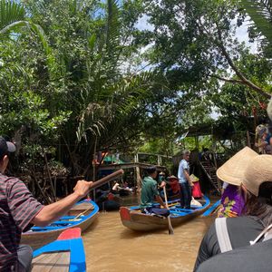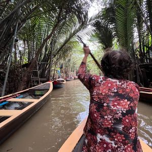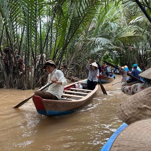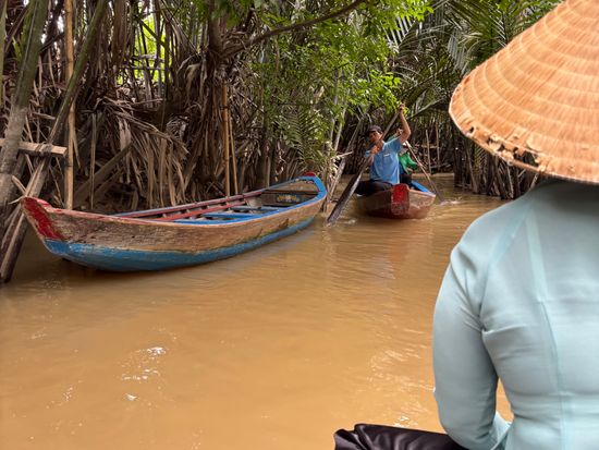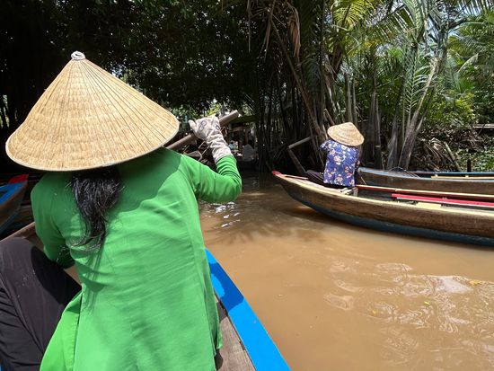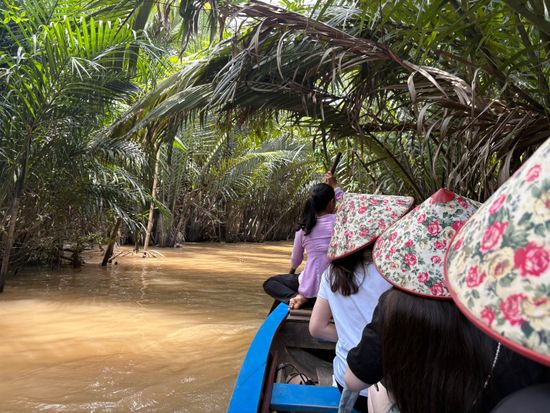 メコンデルタの細い川を手漕ぎボートで進む時間は、まるでジャングルを探検するような特別な体験でした。