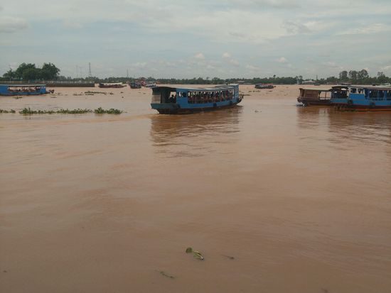 メコン川は自然の中の流れを想像していたのですが、木々で遮られているものの、建物が見え隠れしているのは少しばかり興ざめでした。