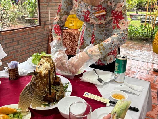 ランチもついていて、象耳魚の丸焼きは見た目はびっくりでしたが、生春巻きにして美味しく頂きました。