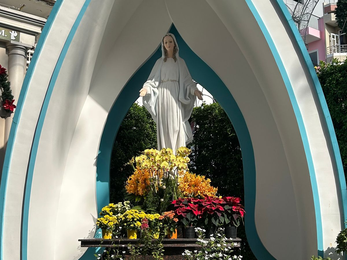 ホテルに迎えに来ていただき、マジェスティックサイゴン・ホーチミンさんの像・ベンタイン市場・MAROU・聖マリア教会・サイゴン中央郵便局・タンディン教会を観光し、最後は珈琲店で少し休憩した後、空港まで送っていただきました。