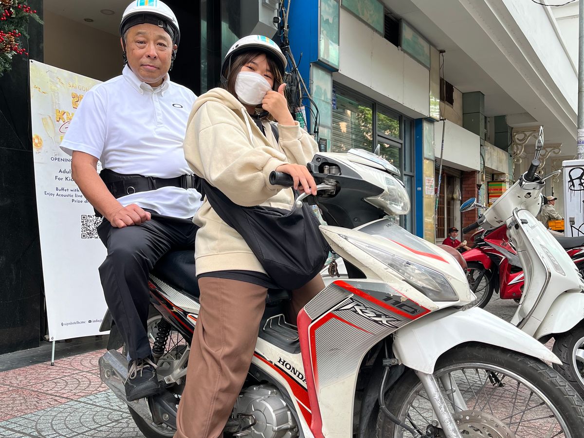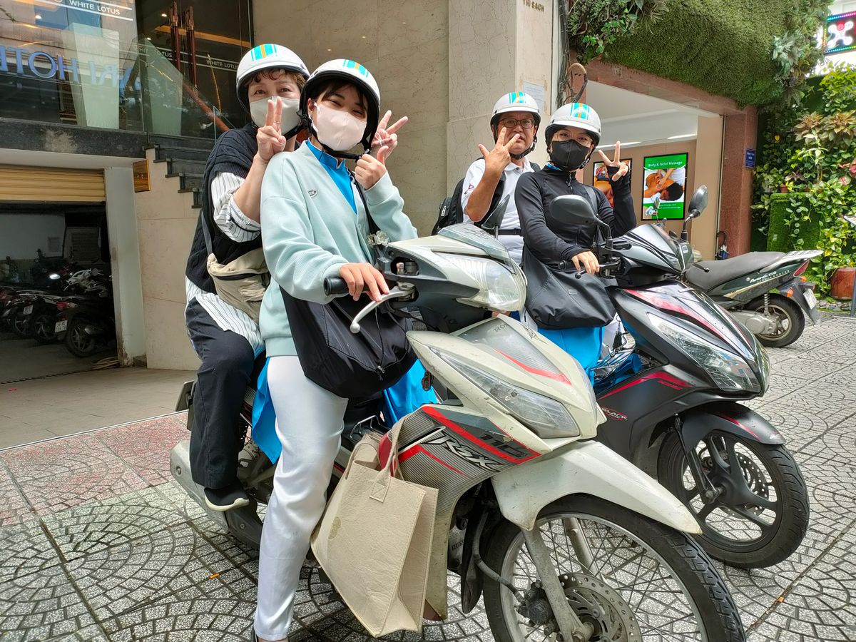 ホーチミン在住ですが、旅行で遊びに来た友人と参加しました。バイクでいろいろな場所に連れて行ってもらい、市場でチェーを食べたり、お勧めのスムージーを飲んだりと充実したツアーでした。バイクに乗るのが初めてで心配していたのですが、ガイドさんが丁寧に説明してくれて、運転にも気をつかってくれました。排気ガス対策でマスクもいただき、大変助かりました。