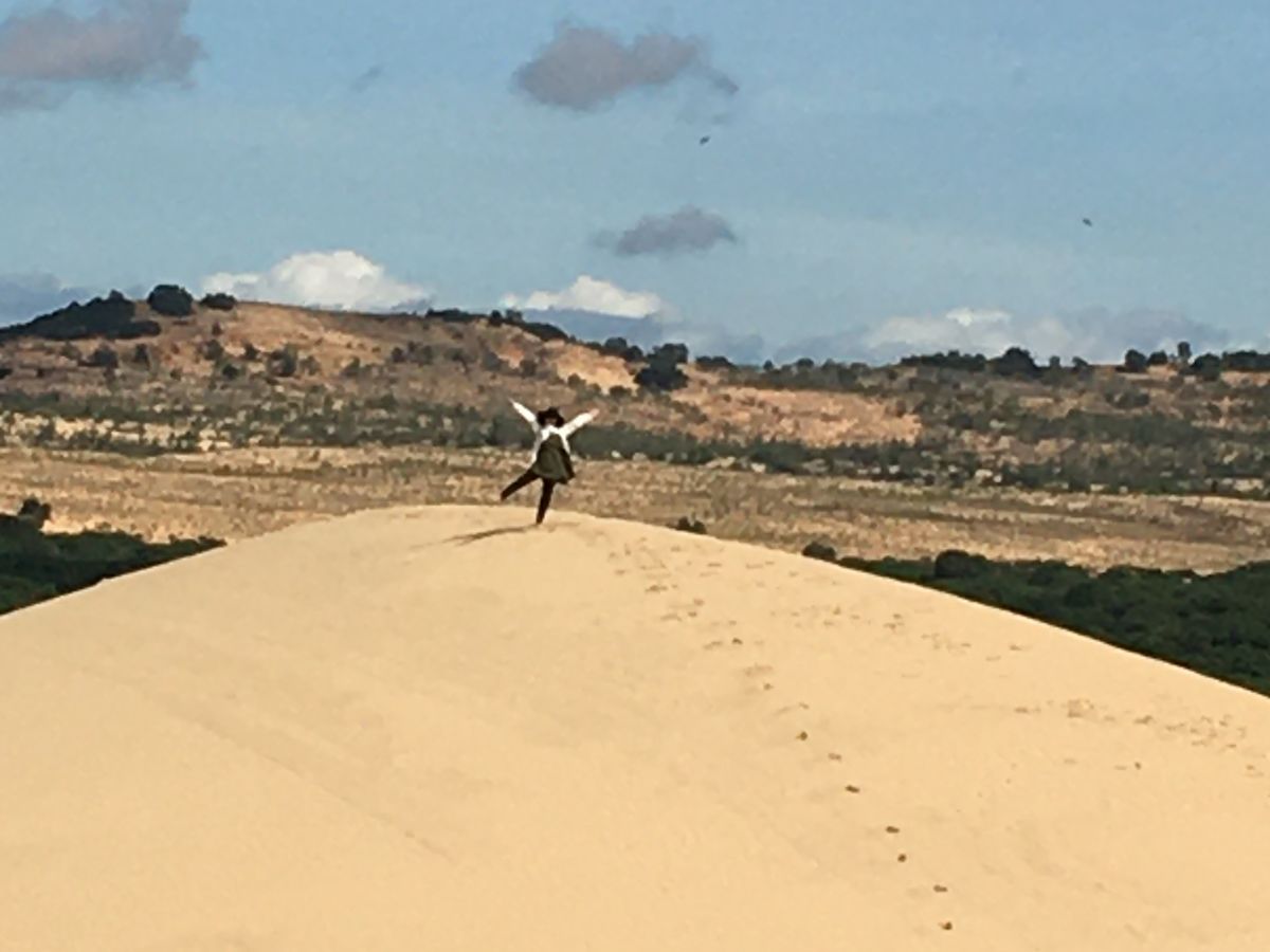 翌日は白い砂丘に。天気もよくなり、裸足で歩くとサラサラの砂が崩れる繊細な砂丘。空が近い。ランドクルーザーで豪快に疾走すると迫力満点です。希望すればバギーも乗れるようです。