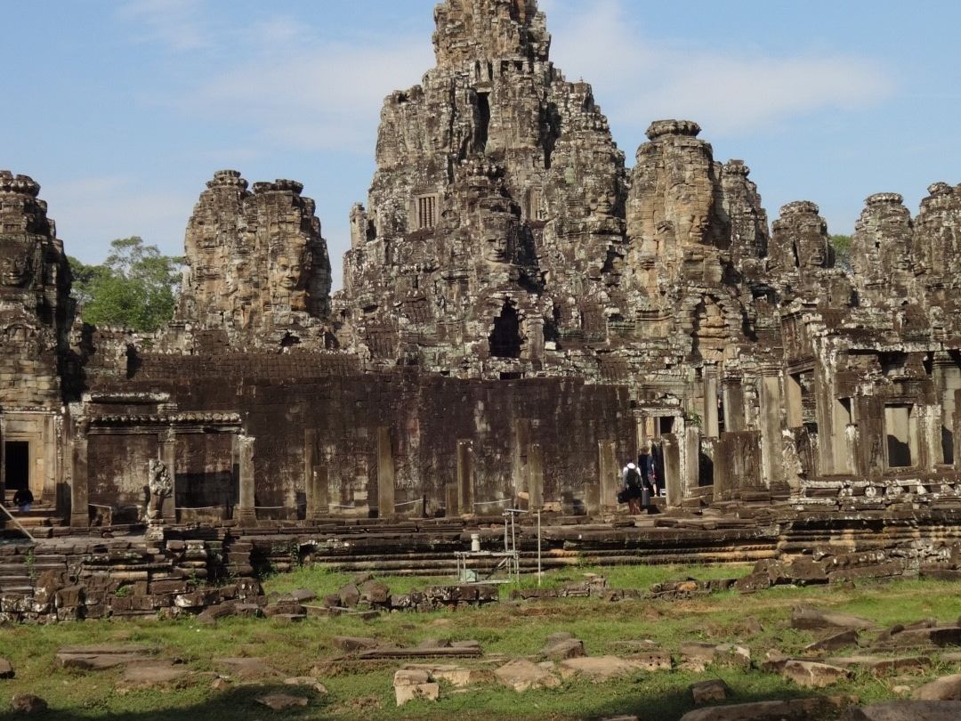 遺跡巡りは初めてだったのですが、日本語のガイドさんの話しが学びの宝庫😄遺跡の顔が取れてるのは盗まれたからだとか、肖像画に描かれた当時の戦いの意味を解説してくれたり、シェムリアップからはタイの方が近い、元々はヒンズー教の寺院として建てられたが、今は仏教となっているなどとても勉強になりました。