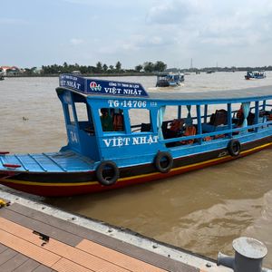 参加者は私達2人とあと1組の方で合計4名でした。朝も割とゆっくりで良かったです。車も快適に過ごせました、ガイドさんが移動中も色々説明して頂けて楽しい時間でした。大きな船でメコン川を渡ってハチミツ、ココナッツキャンディ、ヘビも巻いて!果物も頂きました。あまり、勧誘とかなかったので良かった。クルーズも結構長い距離を行き交う小舟をかき分けて?!進みます。楽しい!お昼ご飯もお魚、エビ、鍋まであってお腹いっぱいになります。ただクーラーが効いてなくて暑かったのが難点でした。市内観光もサクッと車で回ってもらえるので楽でした。晩御飯までに時間があったので、私達はスーパーに買い物に行き、スーパー前にお迎えに来てもらえて、時間も有効に使えました。晩御飯は他のツアーと同じ所で、メニューは違ったのですが、美味しかったです。