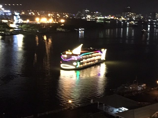 その後、サイゴン川ディナークルーズへ、船上から見るホーチミンの夜景が