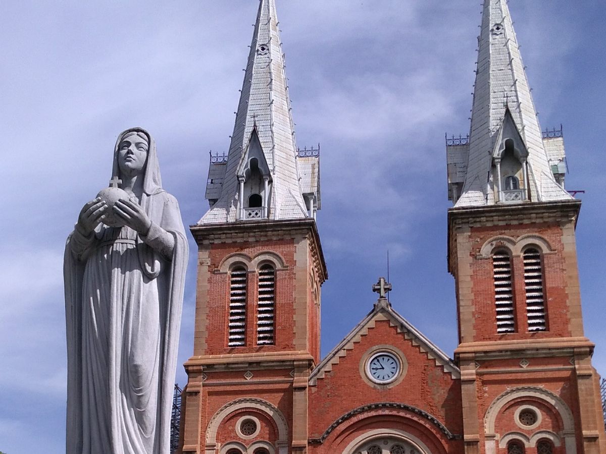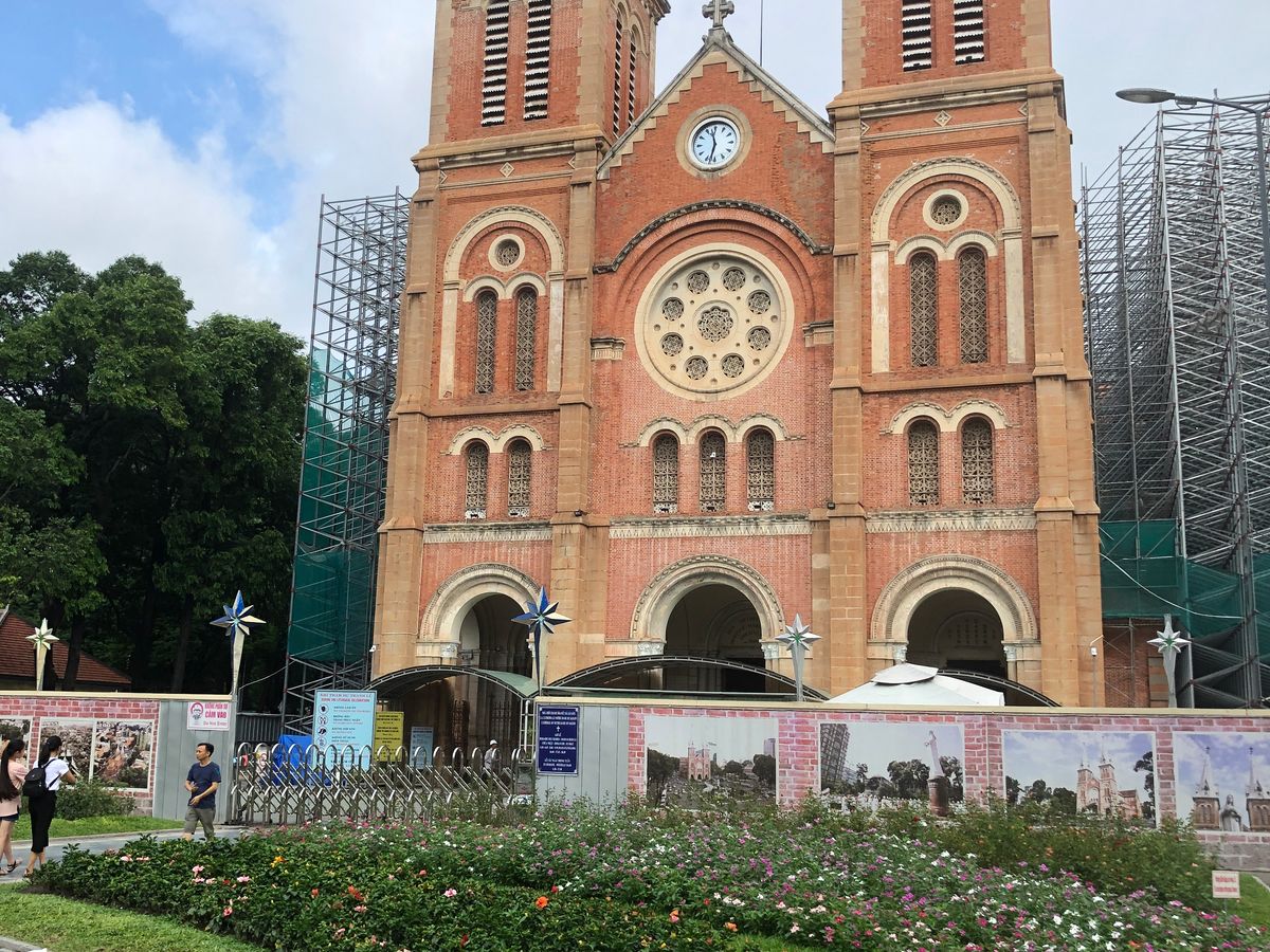 まずは、サイゴン大教会 改装中でしたが、外から見るだけでも素敵な建物でした。