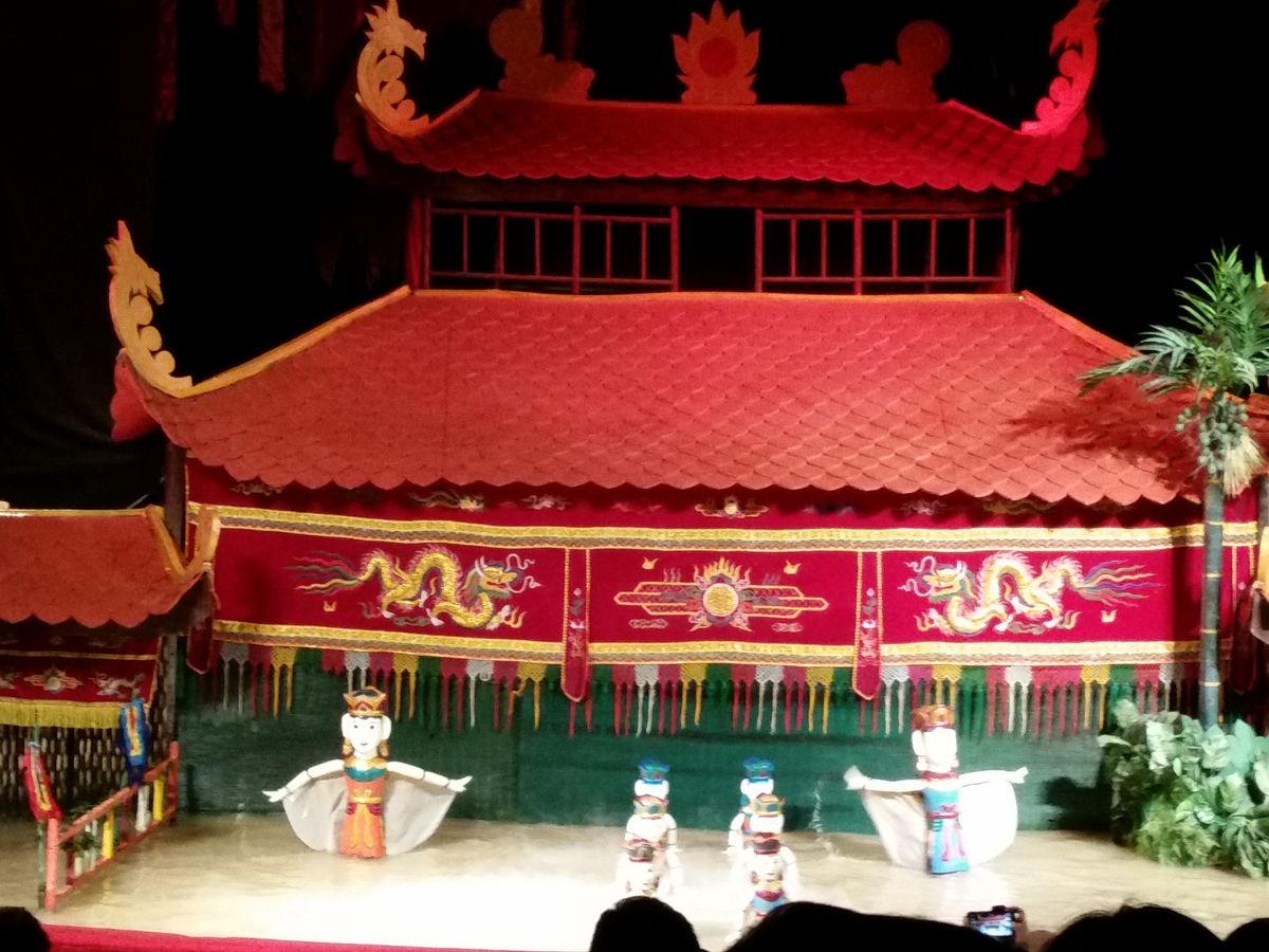 夕方もホテルのロビーにガイドさんが迎えに来てくれて、水上人形劇です。