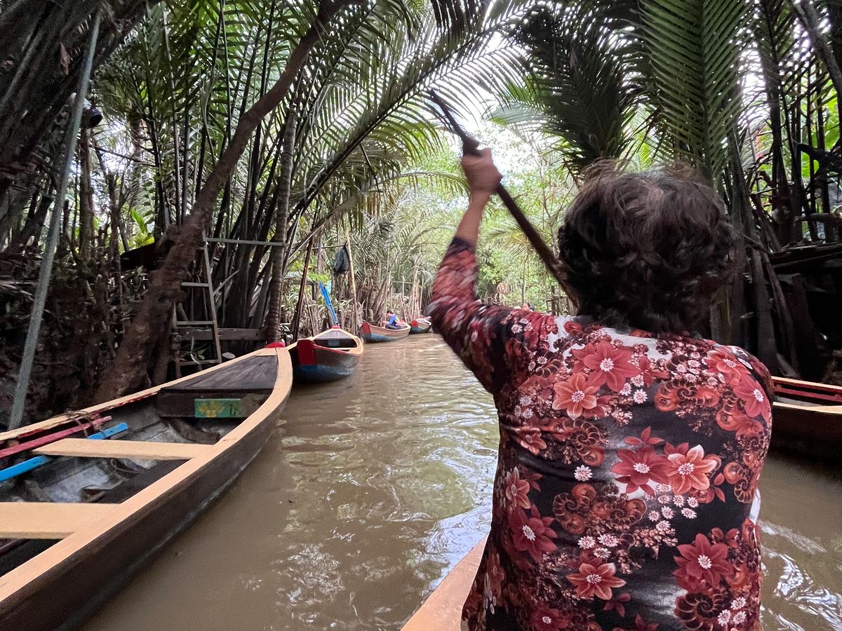 続いてはこれぞジャングルクルーズと言わんばかりの手漕ぎボートに乗りニッパヤシの森を進む。ムツゴロウのような生物や折り返す船頭に挨拶をしながら10分くらいだろうか素晴らしいジャングルクルーズを終えた。