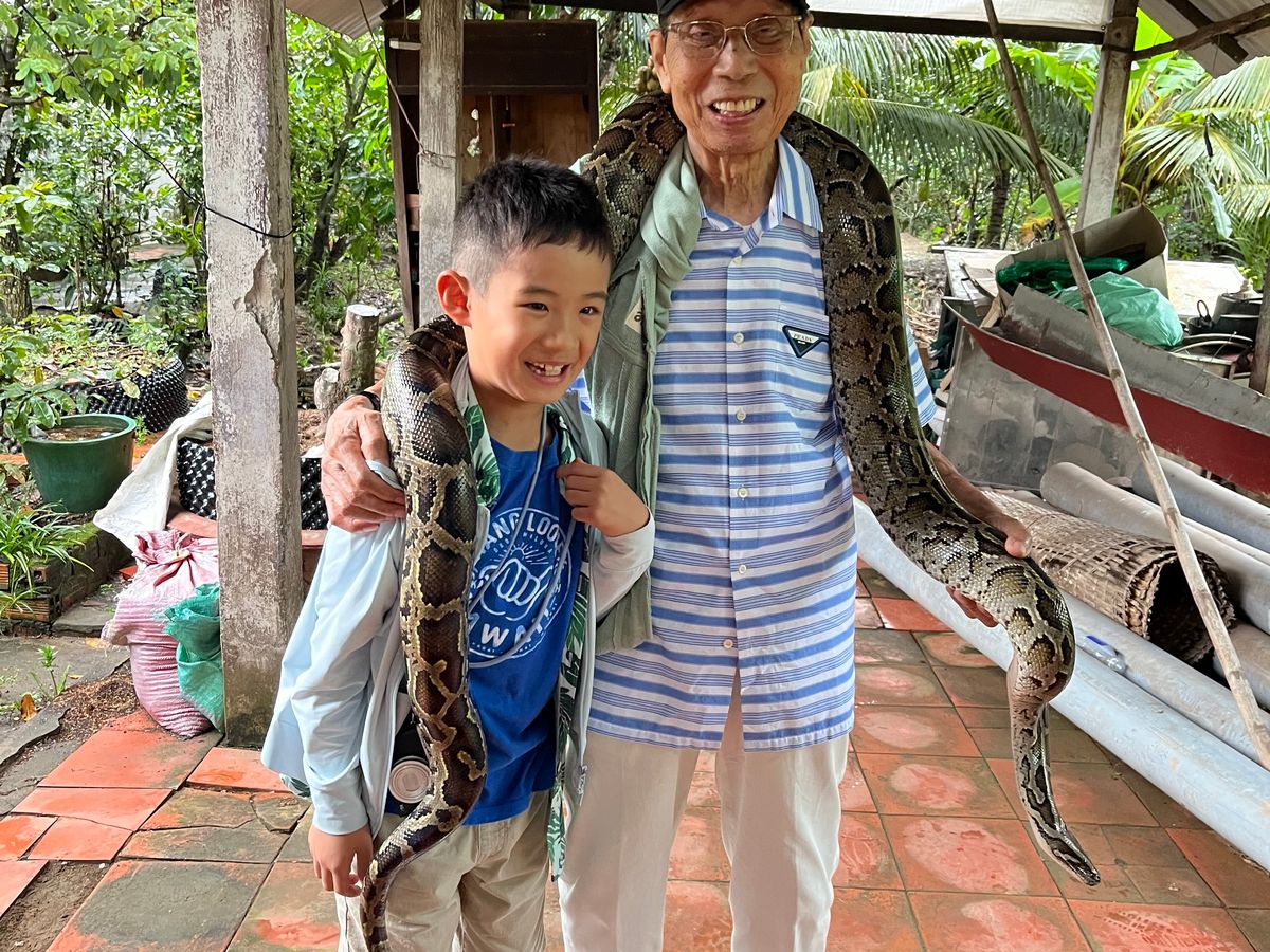 メコン川クルーズやワニ釣り体験、首に蛇を巻く体験やはちみつ・ココナッツ飴の製造過程を見学したり、実に盛り沢山の内容で本当に楽しむことが出来、大満足です。