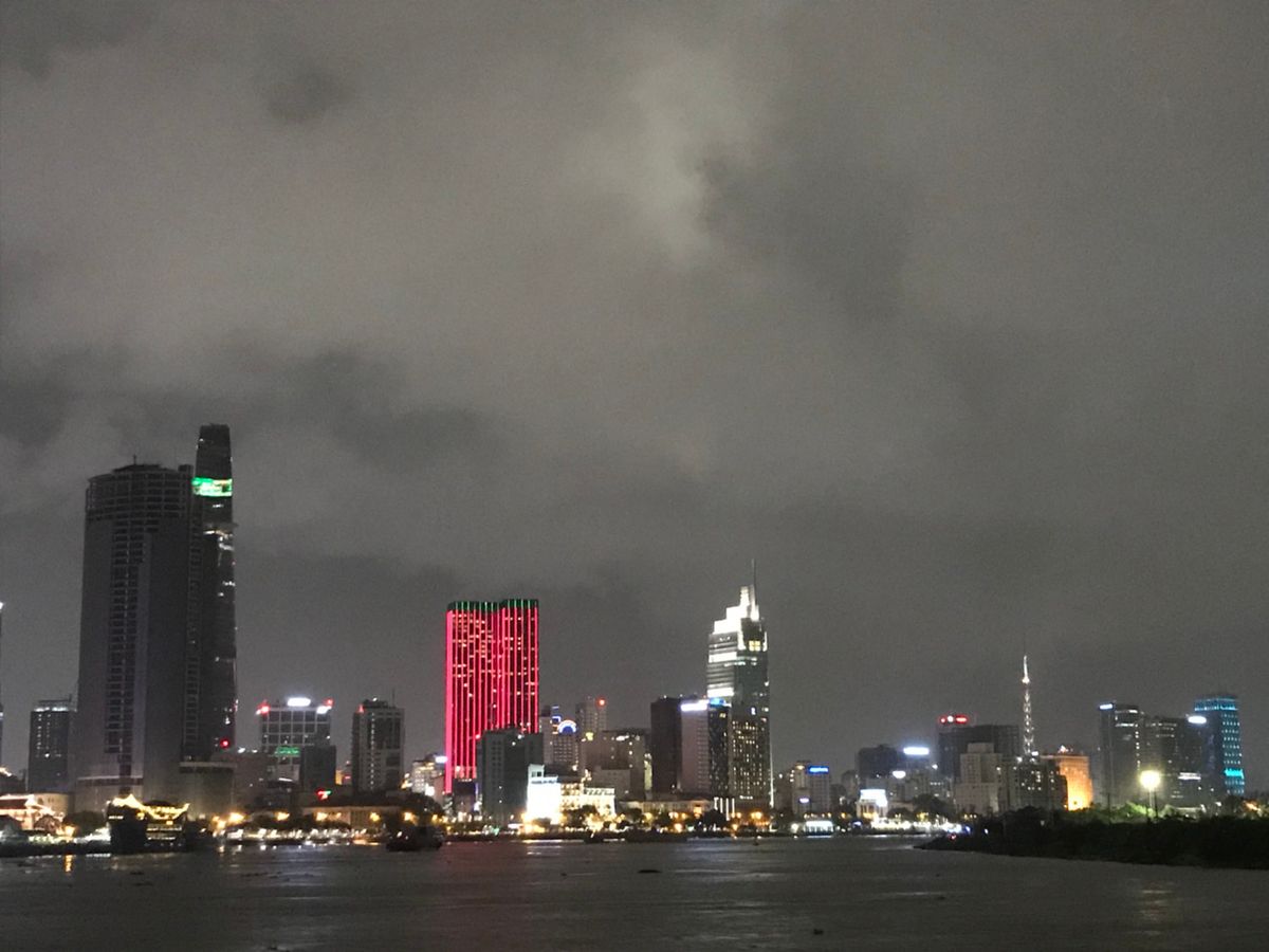 サイゴン川に出て 街から少し離れて観るホーチミンのビルのイルミネーション、それが水面に映って、テンションアップでした〜!
