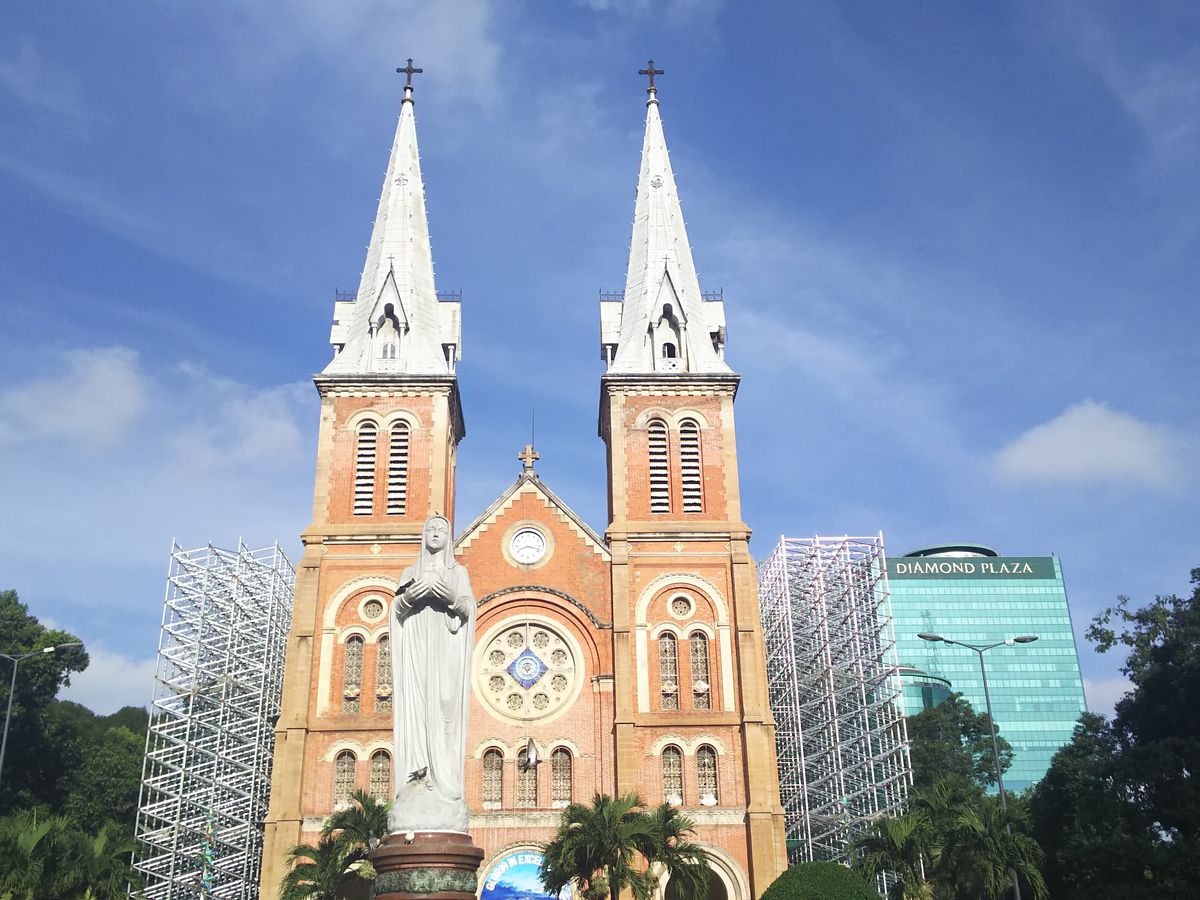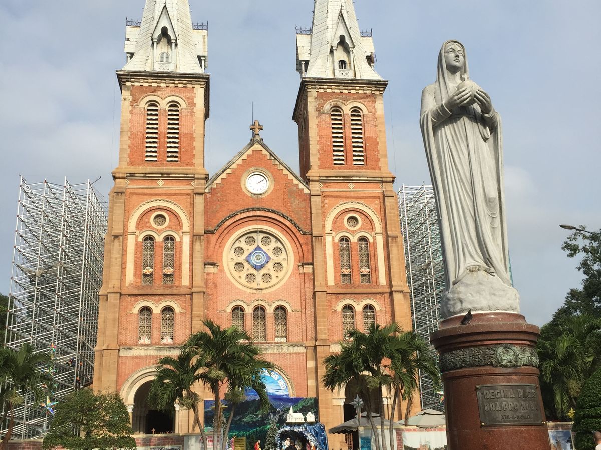 当日は参加者は私たち夫婦のみでした。宿泊のマジェスティックホテルに時間通りにお迎えに来ていただき、一番近いサイゴン大教会・中央郵便局から回りました。事前にわかってはいましたが、サイゴン大教会は工事中で、近づくこともできなかったので、それは残念でした。