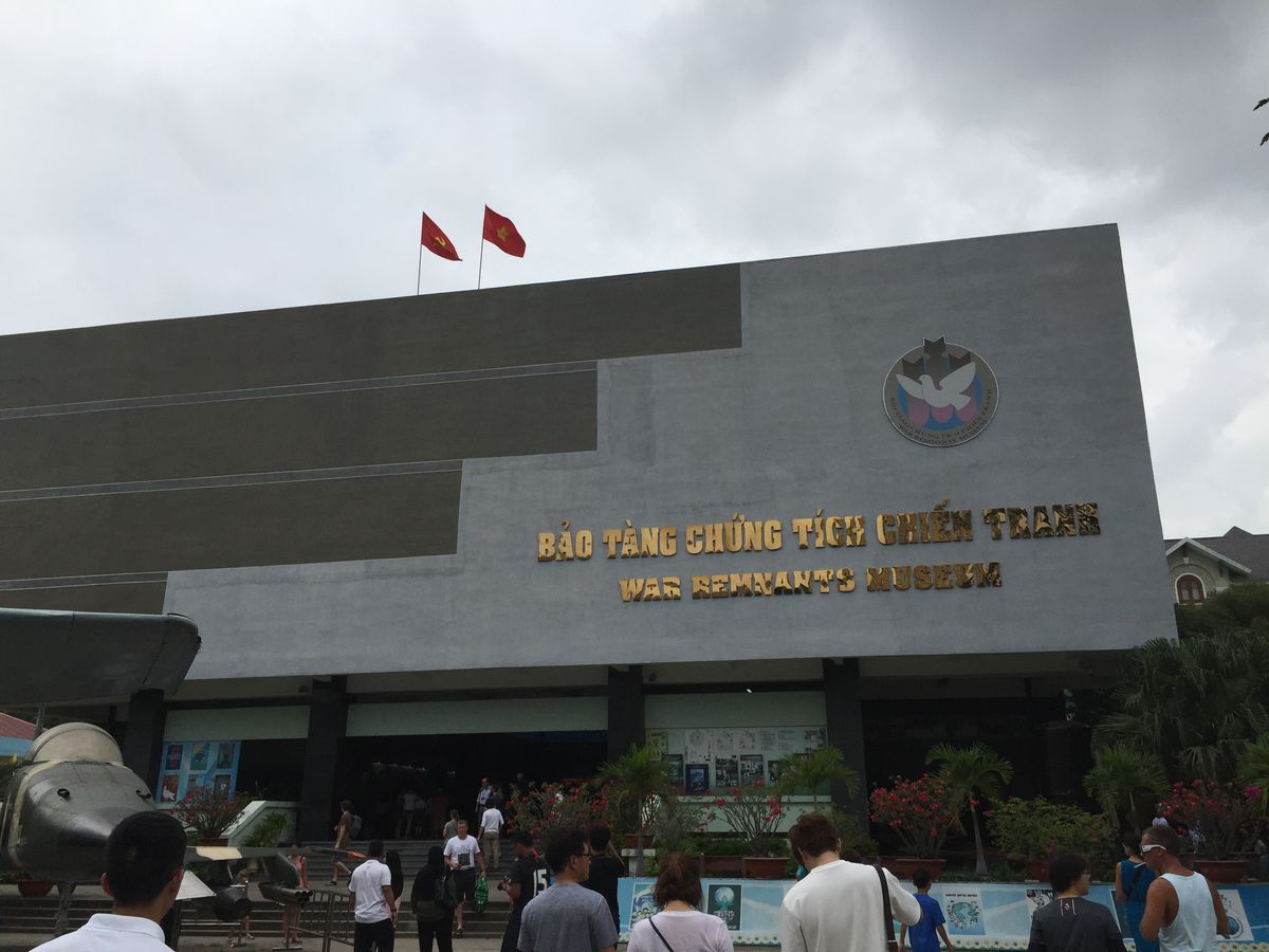 戦争証跡博物館では内部の案内は無く、自分たちだけで1時間弱見学しました。展示内容はとても多いのに、時間配分を間違えて後半の展示をゆっくり見られなかったのが失敗でした・・・また、事前にベトナム戦争のことをあまり勉強していなかったので、消化不良になってしまったのが悔やまれます。欧米人の団体も多く、ツアーガイドの案内を一緒に聴こうと思いましたが、ロシア語だったので断念(笑)。これから行かれる方は是非予習を。でも、日本人ジャーナリストの撮った写真コーナーは日本語で説明があるので、それを見るだけでも十分戦争の悲惨さは伝わります。