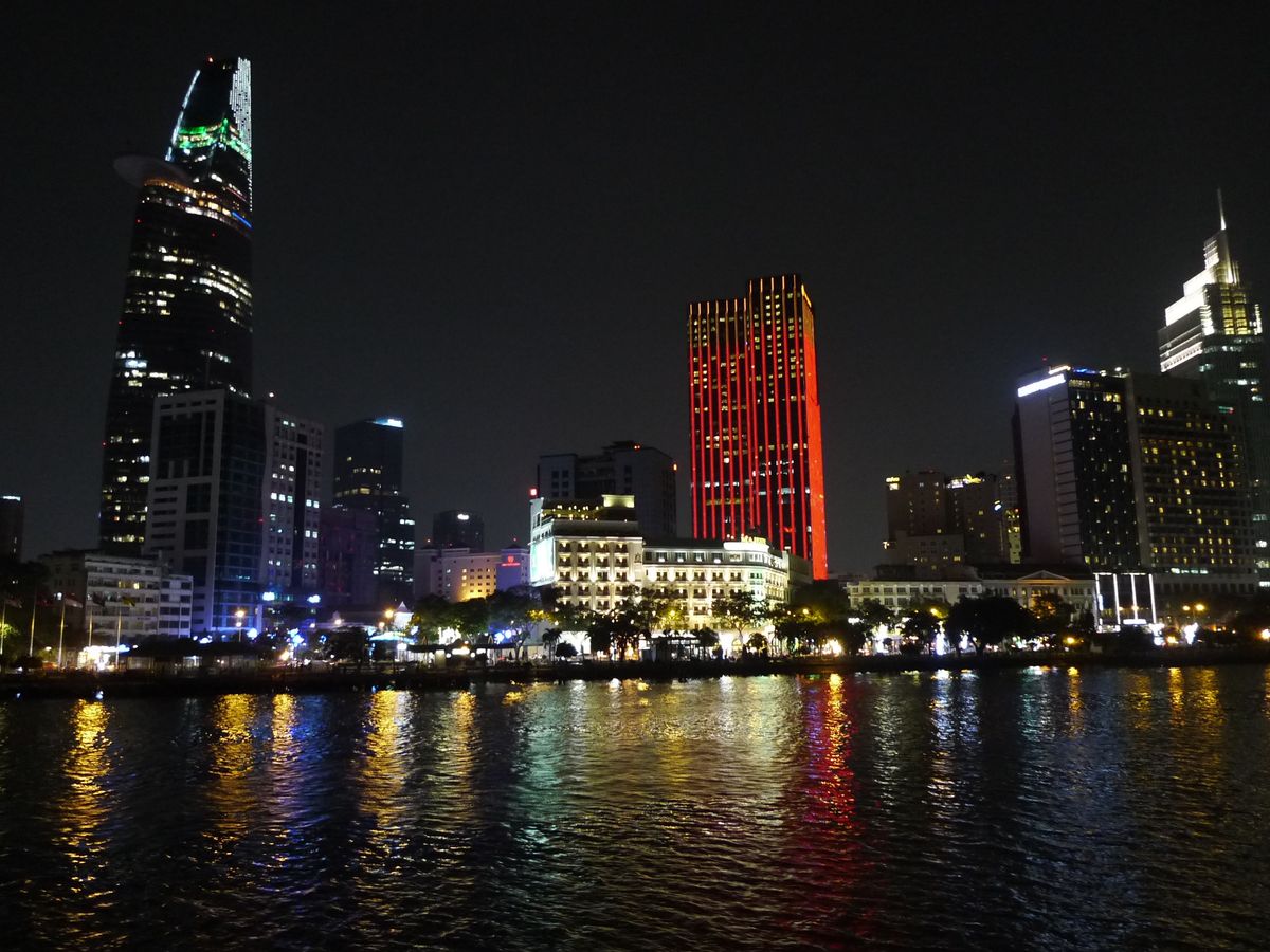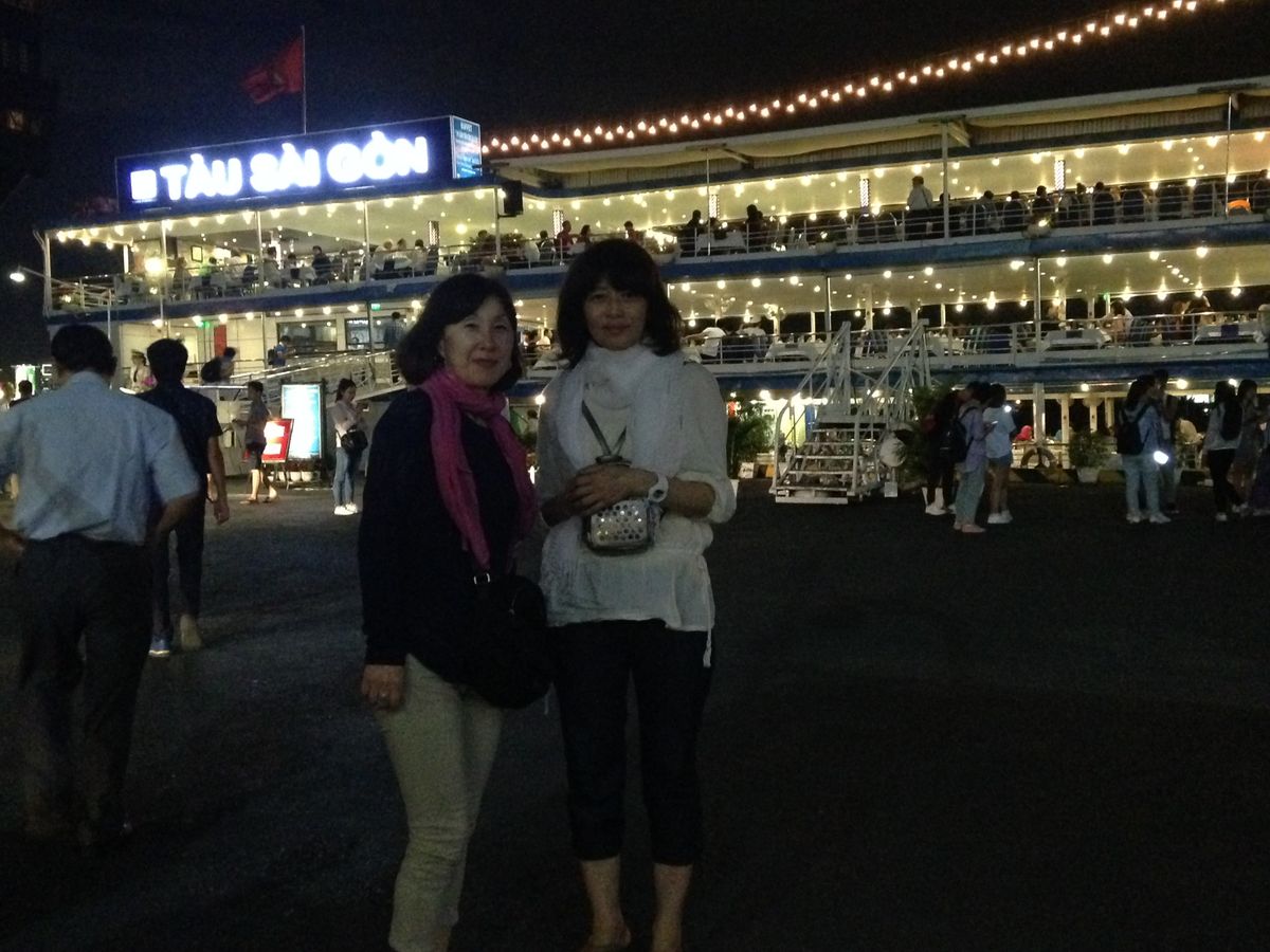 ディナークルーズへ!ディナークルーズは海風がとても気持ちよく。ホーチミンの夜景を満喫することができました。