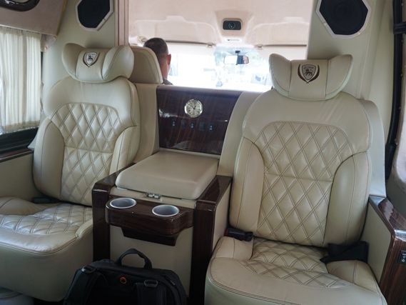 参加者は私たち夫婦だけでしたので、バスではなく、7人定員のバンの内装を豪華に改装したものでした。運よくプライベートツアー同様となり、ガイドさんがとても親切な方でしたので、フォーを食べる店で注文をしてくださったり、食事している間に近くの高層ビルの展望フロア―入場券まで買ってきていただけました。