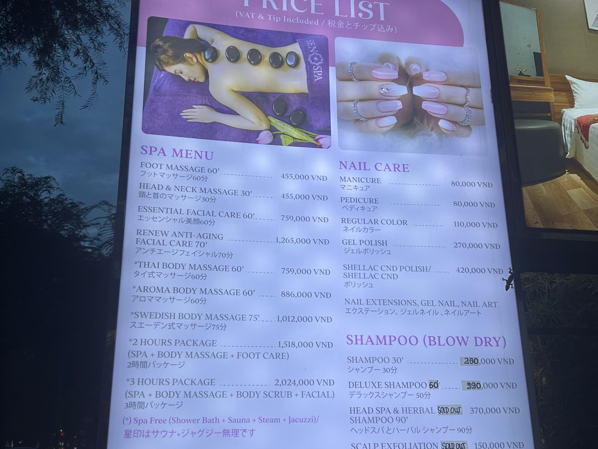 オシャレなお店屋さんがあり、ホーチミンや,ハノイの雑多な感じとまったく違う感じで楽しいです。マッサージも付きのコースでした。