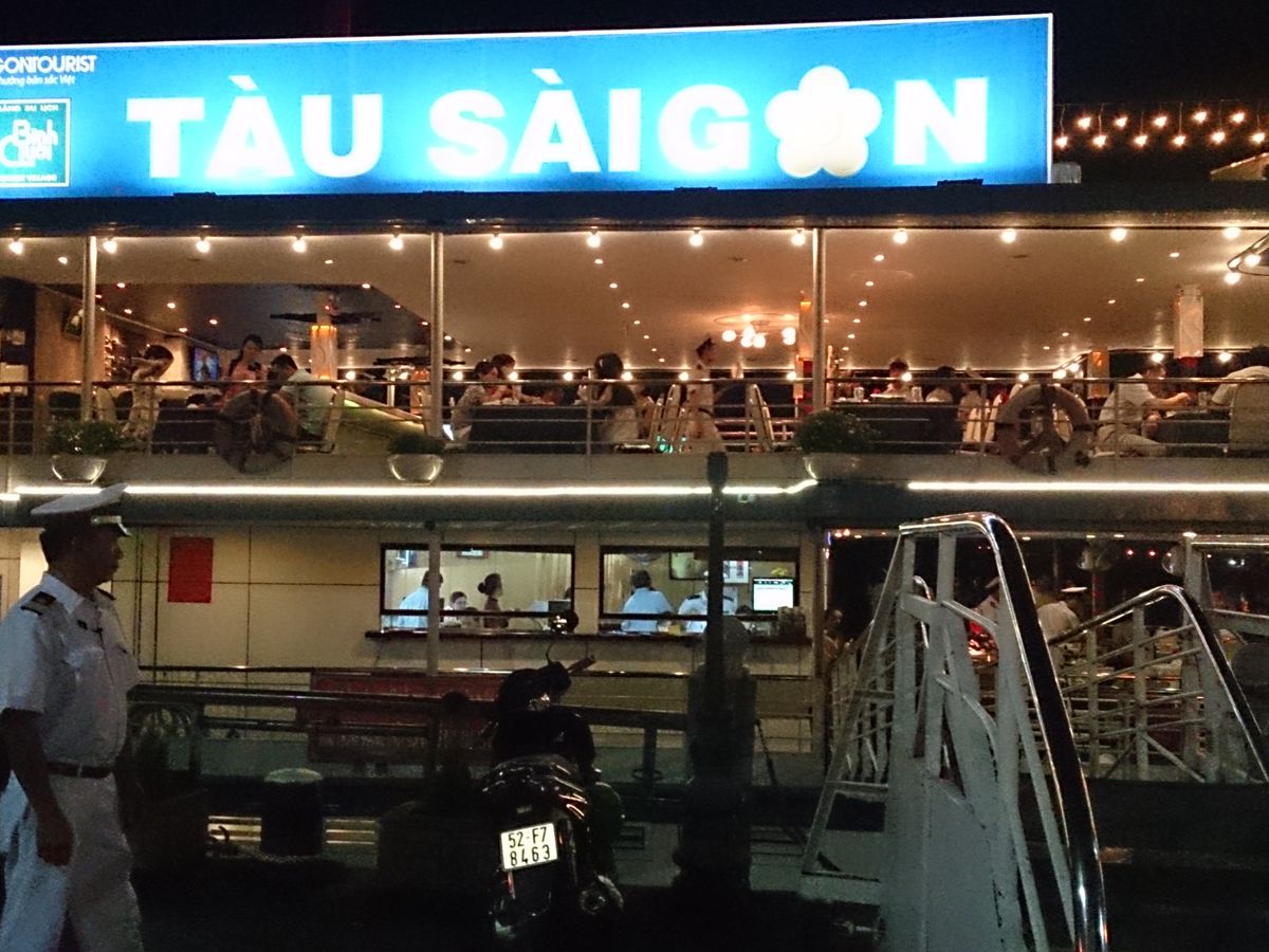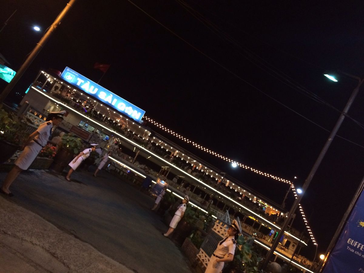 サイゴン川ディナークルーズでは、美味しいベトナム料理フルコースでした。少し量が多かったように思います。各国の言語でのアナウンスがかかり、海員制服に身を包んだ店員さんたちが海に向かって敬礼をしてから出航しました。風が涼しく、ホーチミンの綺麗な夜景とギターの演奏やダンスなどとともに2時間以上漫喫できました。