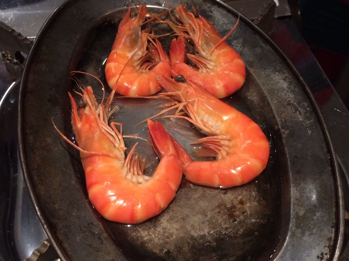 出航前に料理が出てきて、春巻きやエビといった料理で味はまあまあでした。