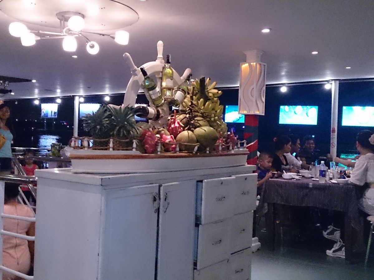 クルージングの最中に晩御飯を食べました。(飲み物は自腹)