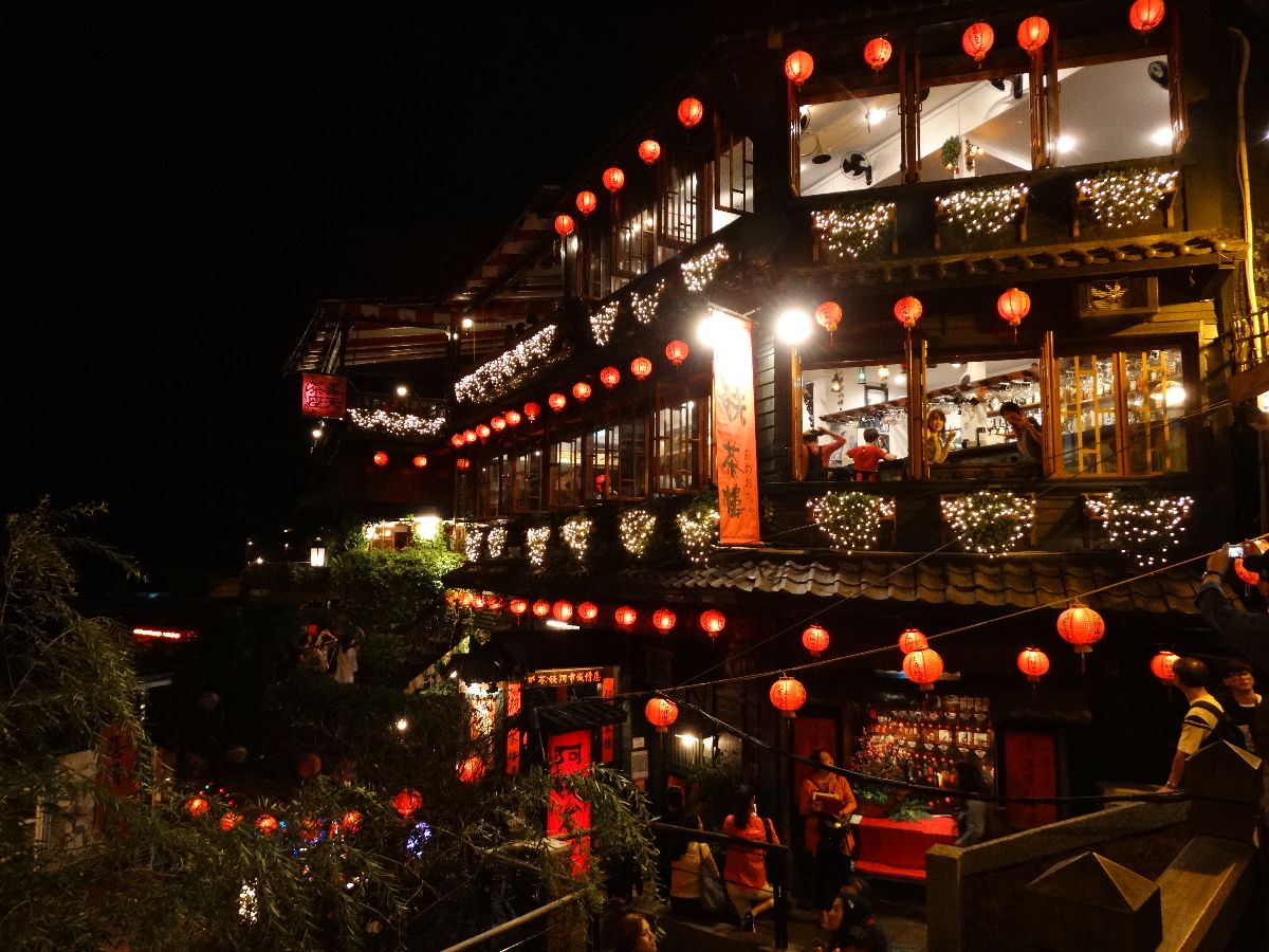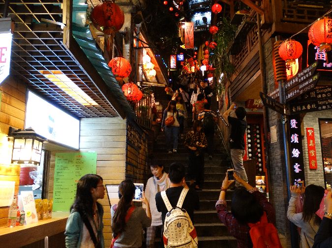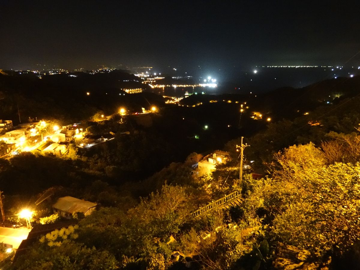 九分近くまでは順調な道路事情でしたが、九分への山間道路は大渋滞で、かなり狭い道を大型バスがすれ違う状況でした。街中中も観光客が多く、ひしめく状態でした。しかしこれぞ九分という雰囲気を満喫でき、天気もよく夜景が見事でした。海まで見える夜景も感動です。街中の夜風景も感動です。当日、虫駆除のため殺虫剤をまくと聞かされ、どうなるのかと心配しましたが、たいしたことはありませんでした。