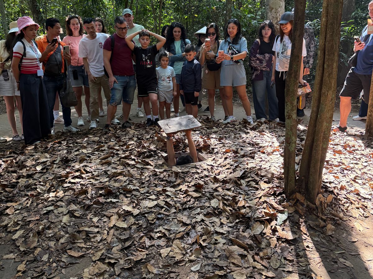 クチまでの車内でガイドのニァーさんから、ベトナム戦争の激戦地であるクチについて、また、その当時の住民の暮らしなど興味深い話が聞けました。クチでも、何もない中で、小さいスコップで穴を掘り250キロに及ぶ迷路のようなトンネルを作り人々が生活していたこと、その一部のトンネルを潜りほんの少しですが体験もする事ができました。メコンデルタでの乗船、手漕ぎボート体験、果樹園、植物園のように豊かな作物、蜂蜜やカカオ、ココナッツなどの試食も楽しかったです。なかなか、個人で1日で行くには遠いと思いますので、ツアーは便利だと思います。