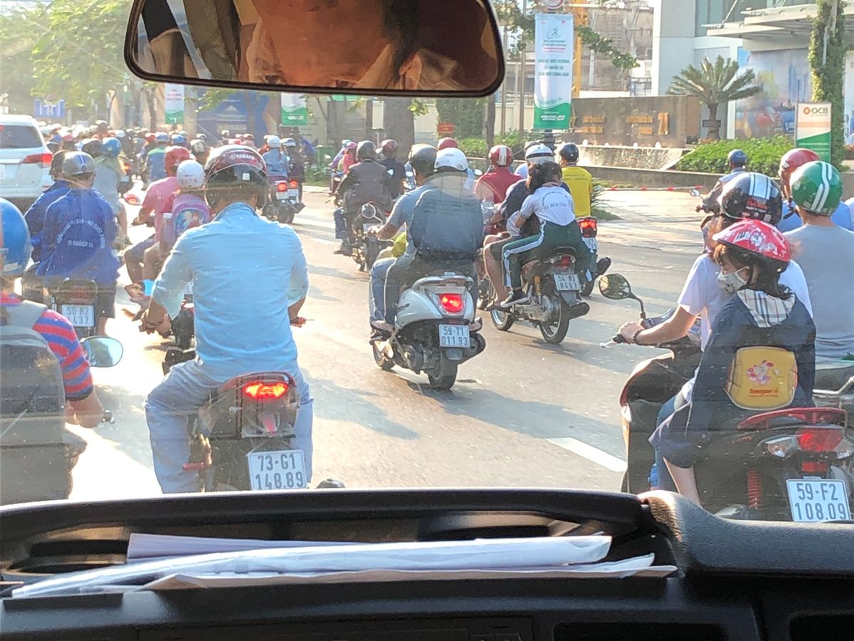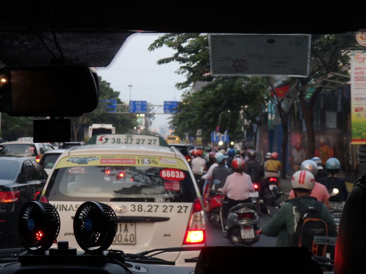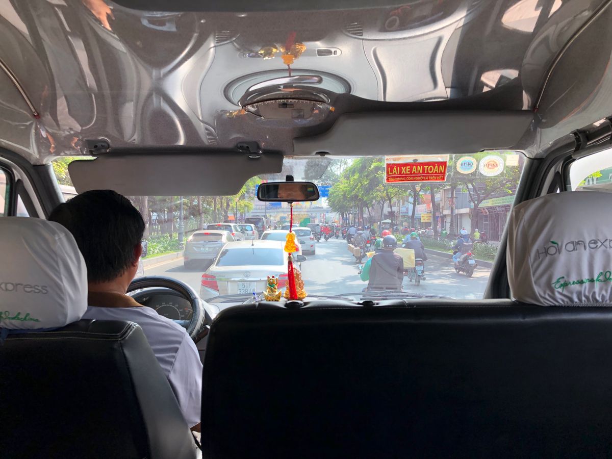初ベトナムで深夜になるので、割高ですが安全を買いました。ちょっと分かりにくかったのか、ホテルの前を通過。バックで戻りました。今どきはグーグルマップでチェックしてるので、運転手さんより分かっちゃってるわ。