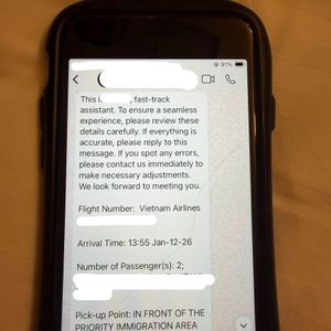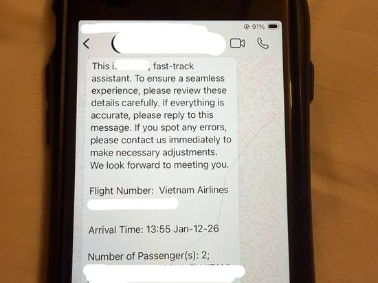 ベトナム入国の半日前位に、Wats Appでベトナムのファストラック業者から到着便と名前の確認メールがありました。