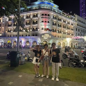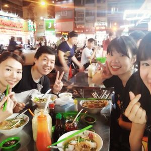 Hồng さん、Hoa さん、楽しい体験をさせてくれてどうもありがとう。彼女達はフレンドリーでとても真面目に日本語を学んでいる人達です。バイクの後ろに乗っても全く危ない感じがしない程彼女達は上手に慎重に運転してくれます。夜風はバイクに乗ると丁度気持ちが良い位です。お勧めのフーティウという麺は上品なこくがあってとても美味しかったです。ピンクの教会やチャンフンダオ像の前で記念写真を撮ったり42番地古アパートの前のたくさんの人が集まって夜を過ごす風景を見たり、夜のホーチミン市内は彼女達と一緒だったので何処に行っても安心でした。これからホーチミンも地下鉄が通り徐々に変わって行くのでしょうが、今のホーチミンでバイクに乗るのはとても貴重な体験でした。全く怖くないですヨ、オススメです。