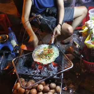 カメ池で食べた、ライスペーパーの香草巻きと、卵の中身をくりぬいて香辛料と一緒に戻して焼いた焼き卵、が美味しかったです。