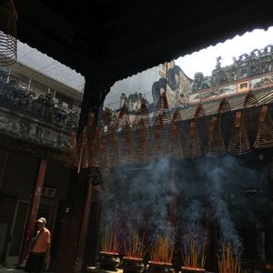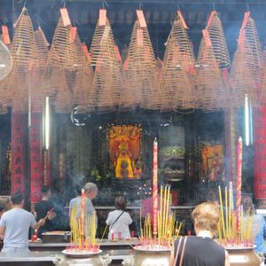 1760年に建造された歴史ある中国に起源を持つお寺。印象に残ったのは「巨大な渦巻き線香」と「建物の装飾」でした。300円位を支払い、巨大な渦巻き線香で家内安全を祈願。1週間近く燃えているそうなので、ご利益がありそうに感じました。建物については、柱に龍の彫刻、壁の上側にはストーリーがわかる手掘りの彫刻、天井には絵画など、ところどころで中国文化を感じることができた。また、アオザイを着たモデルさんのような女性が何名か撮影しており、外国の観光客もモデルさんの写真を撮っていました。
