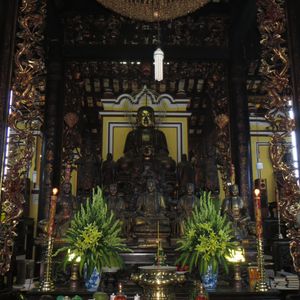 ホーチミンのベトナム仏教最古のお寺。この宗派の市民は週2回お参りに来るそうです。本堂の仏像をはじめ、歴史的な建造物の中は荘厳な雰囲気に包まれていました。なお、正面から入れない理由は、過去に銅製の仏像の盗難があったそうで、正面の入り口を閉鎖し、わざと入口を遠くしているとガイドさんが裏話を話してくれました。