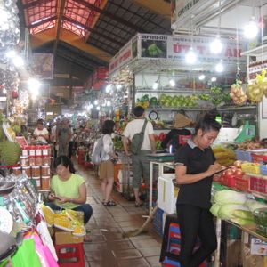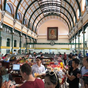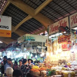 次はベンタイン市場かな、と思っていると、またドンコイ通りに戻って休憩ということで、お土産物屋さんに。何を買わされるんだろう、と一瞬身構えましたが、お茶をサービスしてもらい、それほどプッシュもなかったので何も買わずにベンタイン市場に向かいました。ベトナムに着いてから色んなガイドさんにボッタクリとスリに気をつけろ、と口を酸っぱくして注意されたので、ちょっと緊張の市場回りとなりました。ここもガイドさんとは別れて自分たちだけで小1時間の自由時間。結局立ち止まるのも怖くて、何も買わず何も食べずで終わってしまいました。ガイドさんに一緒に回ってくださいと頼んだ方が良かったかな?体験談を読むと、ガイドさんによって本当に色々みたいだったので、どの程度希望を言って良いのかがわからなくてちょっと後悔。よく考えたらこの日は自分たちだけだったので勇気を出して頼んでもよかったのかもしれません。
