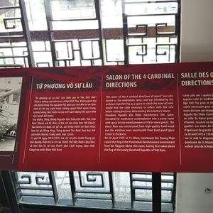 続いて統一会堂に行きました。事前に全く予習はしていなかったのですが、充分に時間をとって内部を詳しく説明していただき、とても興味深かったです。内部の案内板は英語、フランス語、ベトナム語だけだったので、日本語でガイドしていただいてよかったと思いました。