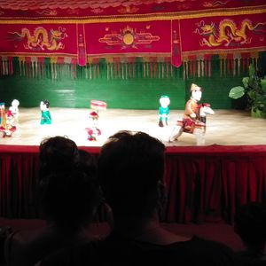 後半戦は、まずは水上人形劇場へ。水がかかりそうなかぶりつきの席で見ることができました。言葉は全くわかりませんが、人形の軽快な動きでなんとなく話はわかります。人形の情緒たっぷりな演技と演出に観客からは笑いが起き、最後はなかなか激しい展開に……。古くさい人形劇と食わず嫌いせず、一度見ておいて損はないと思います。
