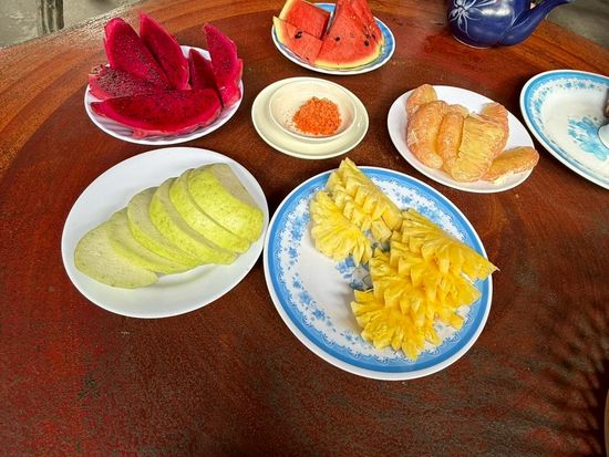 港に着いてから渡し船で獅子島に渡りハチミツ園でハチミツティー、手漕ぎボートでジャングルクルーズ、果樹園で美味しい果物を食べ、ココナッツキャンディー工場を見学し渡し船で戻りランチは港近くのレストランで2大名物の象耳魚のライスペーパー巻きと大きく膨らんだ揚げ餅を美味しく頂き予定通りホーチミン市内に戻り宿泊先のホテルに送って頂きました。