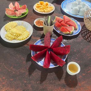 果樹園と書いているが、どこにあったのかよく分からないままカットフルーツが出てくる。フルーツ食べながら謎の音楽聴く。チップを要求される。
