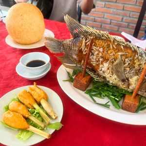 ランチは、フォーは麺がからまっており、インスタント麺かとおもうレベルでした。4人でとりわけ(象耳魚)なので、2人グループや1人参加だと食べにくく感じました。食事内容は、いまいちです。